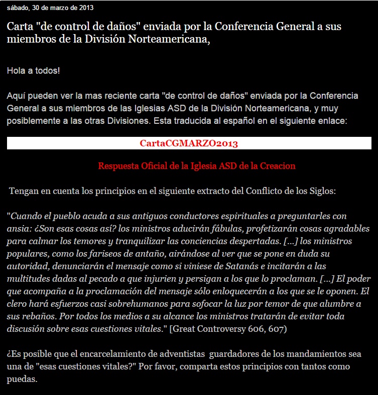 Carta Iniciada por la C.G ASD