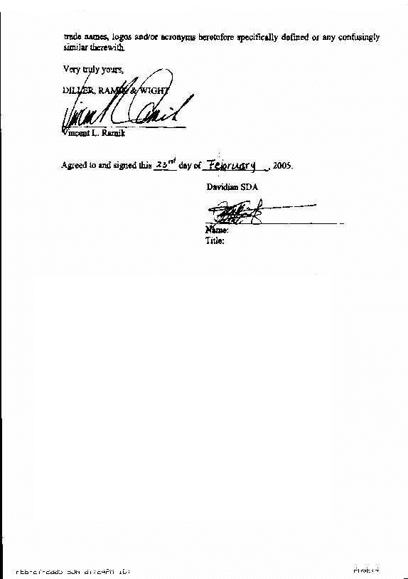 Actualizacion 10/21/05: El Pastor “Chick” ha recibido un carta certificada de los abogados de la Corporación de la Conferencia, demandando la renuncia/rendición de varios nombres de dominio. Esta carta parece, sobre inspección, ser meramente una copia de una carta que se mando anteriormente al propietario de algunos nombres de dominio, usados por el propietario de davidiansda.org, conteniendo solo alteraciones insignificantes (ver esta comunicación con los Davidianos en los enlaces mencionados arriba).De la carta misma, se puede decir que los hechos de la correspondencia se han confundido, ya que ellos(CG) se refieren a comunicaciones con el propietario a través de los ASD Davidianos ( que nunca tomaron lugar), y todos de los nombres de dominio menos uno que la CG cito/fueron usados por los Davidianos...El Pastor “ Chick” ha enviado por correo una respuesta a esta carta certificada .