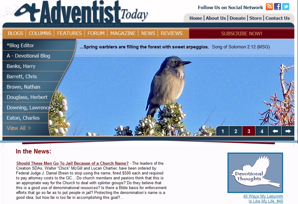 Actualización 6/26/10:El informe y la recomendación al Juez Breen es presentada por el Juez Auxiliar Bryant. Recomendando a la Corte que tanto el Sr. Chartier y el Pastor McGill sean juzgados por desacato, el Juez tiene la oportunidad de dar varias observaciones con respecto a sus percepciones, muchas de las cuales son descaradamente inexactas y / o condescendientes. Entre otras declaraciones, el juez elogia el Sr. Chartier por su sinceridad y conocimiento y después procede a desestimarlo como un joven mal dirigido e inexperto. Informa además que el Acusado tomó el nombre de forma arbitraria (a pesar de que en un previo reconocimiento escrito Judicial se establece que fue en base a una revelación divina), y que se apodero de un derecho de propiedad (a pesar de que la identidad religiosa es una cuestión totalmente diferente a propiedades), y que está creando confusión para el detrimento de la Conferencia General (a pesar de que ninguna evidencia de tal cosa ha sido presentada). Afirma además que el método adecuado para resolver controversias en cuanto a doctrina sería presentar el asunto a los líderes de la Iglesia Adventista en lugar de por separado (algo que demuestra un claro desconocimiento del hecho de que tal cosa se trato en varias ocasiones), para tomar un nombre diferente y distintivo al del Demandante (sin tener en cuenta el hecho de que el Acusado usa un nombre diferente y distintivo) y reafirma la idea de que el Tribunal de Justicia y el Demandante no están interfiriendo con la capacidad del acusado para practicar libremente su religión (a pesar de haber presentado y resaltado varias veces que el uso del nombre es parte de nuestra religión). Como se trata de un informe y de una recomendación al juez Breen, la decisión final se espera desde su escritorio.