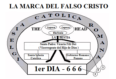 La marca del "falso cristo" es la marca del "anticristo." El Papado, o la combinacion de la Santa Iglesia Catolica con el Gobierno Romano Pagano, es "la bestia" de Apocalipsis 13.La Bestia esta ciega en ambos ojos, al clamar ser "la cabeza" de la Iglesia de Cristo. Mientras hace estas declaraciones, tiene su boca llena de blasfemia.